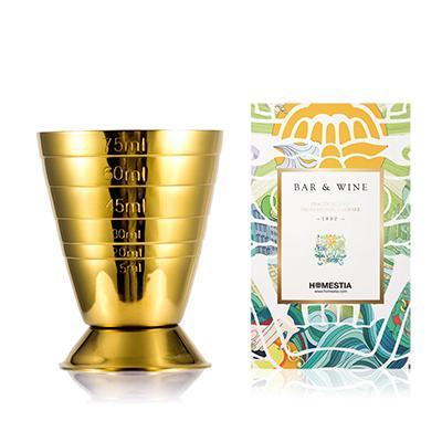 - Homestia Three measurement units Cocktail Jigger engraved on the outside in Ounce, TBSP, Milliliters.
